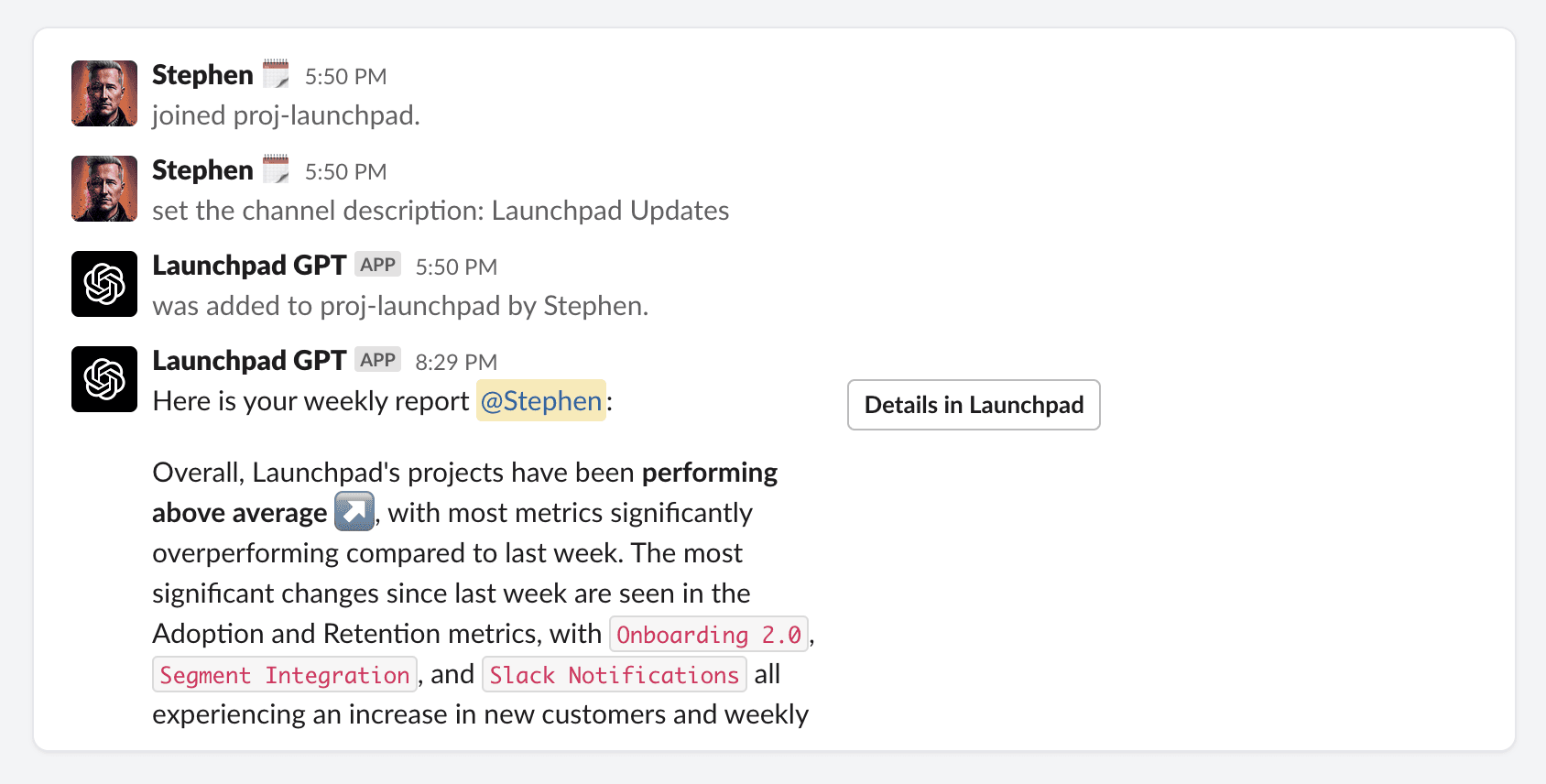 Launchpad AI automatically keeps the entire organization informed about launch impact.